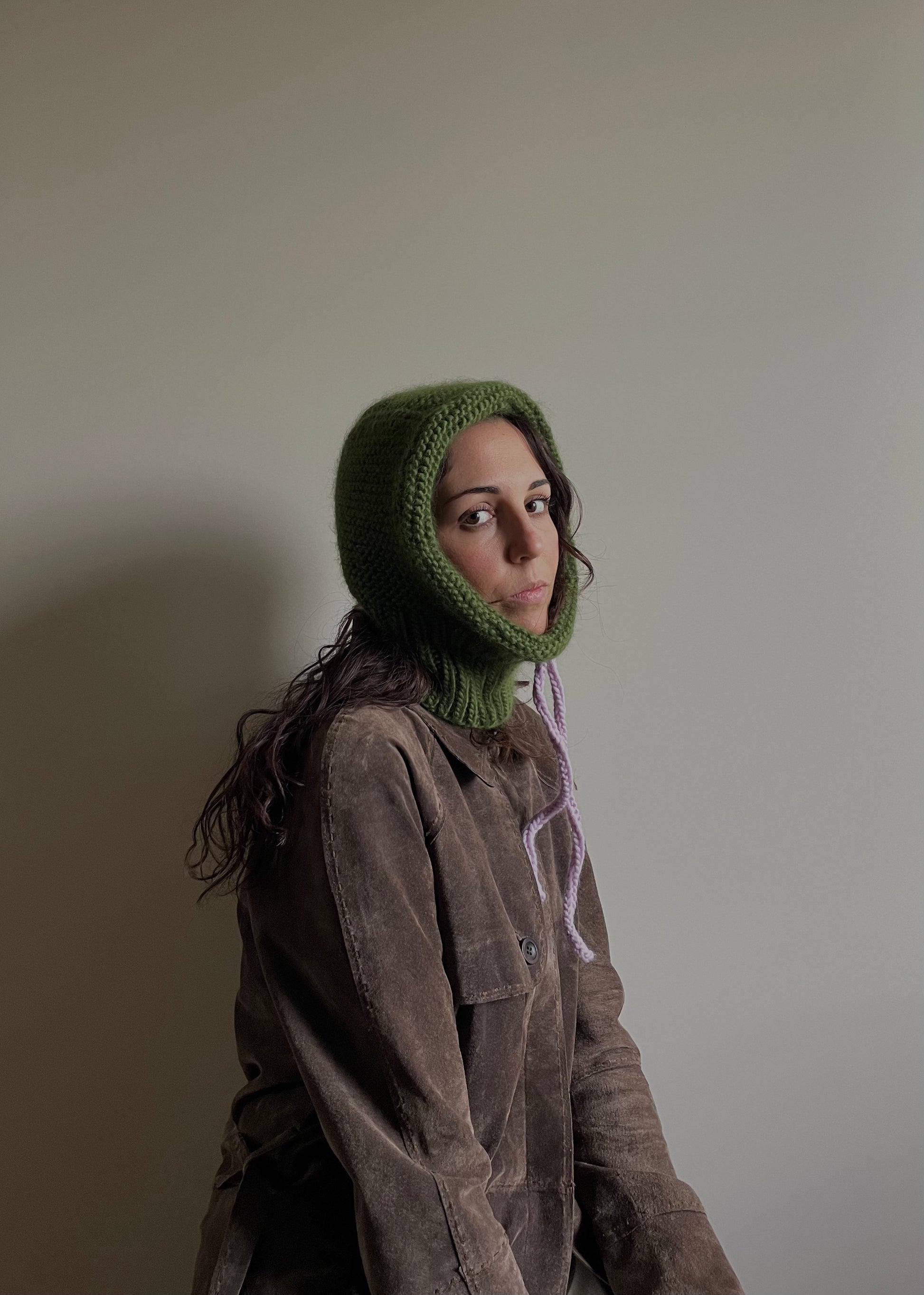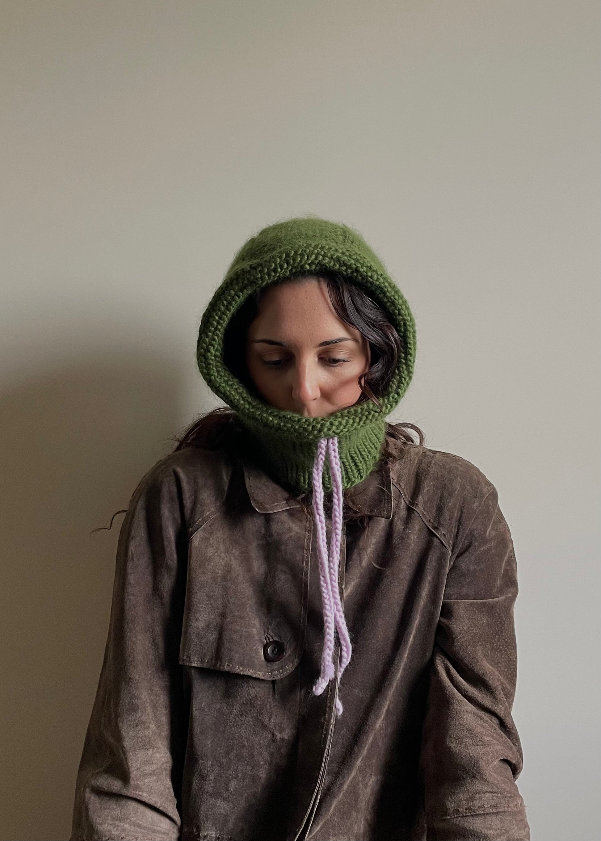 Personalizzazione: è possibile scegliere il colore del balaclava (non del laccetto che rimane quindi in rosa). Scrivetemi una mail o un DM su Instagram per vedere i colori disponibili e trovare quello perfetto per voi!