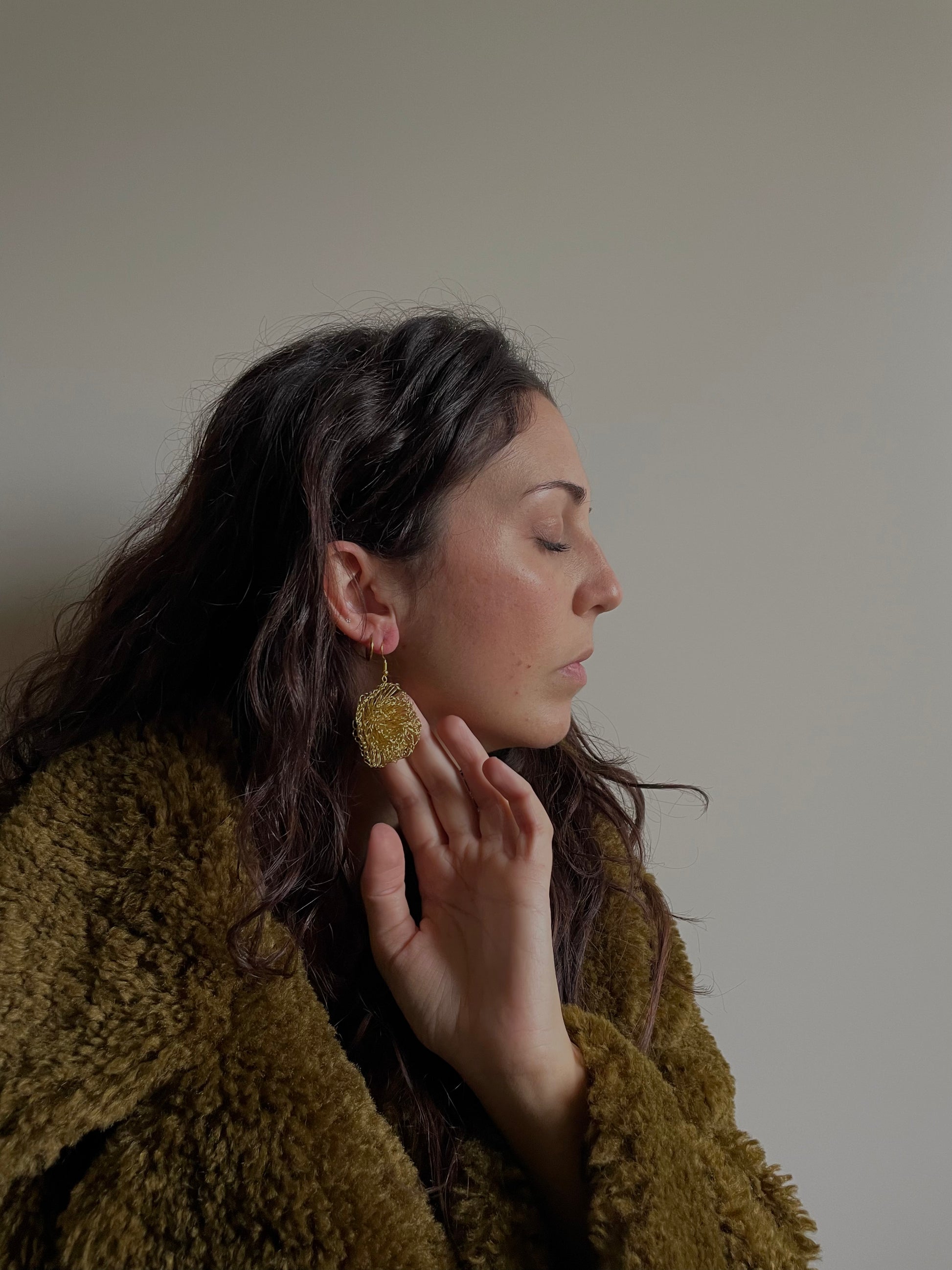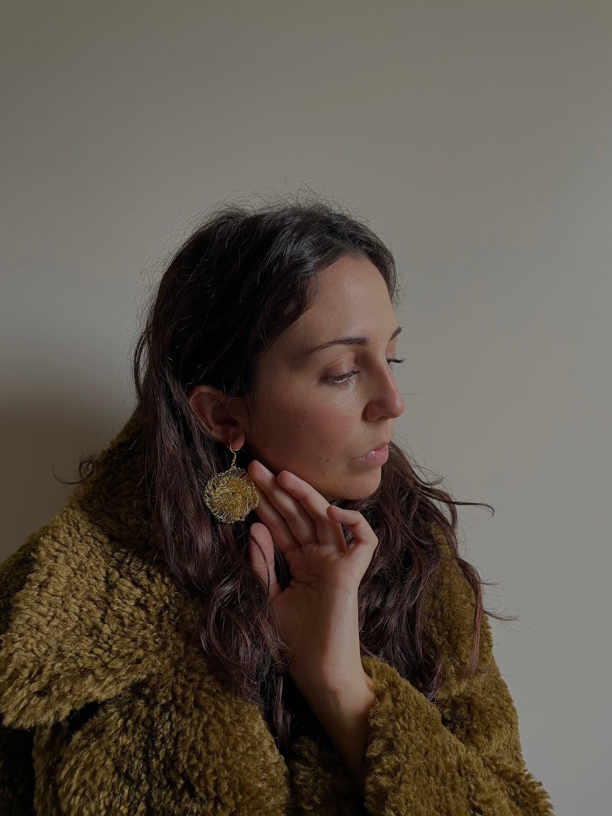 Gli orecchini Garofano sono interamente realizzati a mano lavorando all’uncinetto un filo metallico. Confezionati in un sacchettino di cotone.